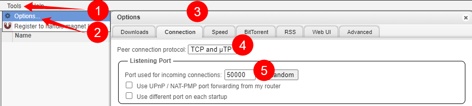 4. Change TCP and uTP to TCP, if you get speed issues try one of the others.
