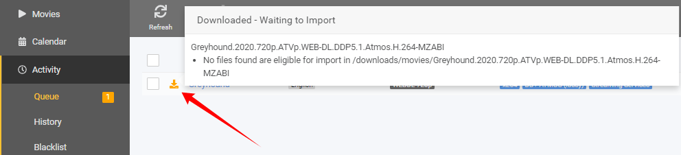 You will see a orange download icon, hover over it with your mouse and you will get an error that looks a bit like this: